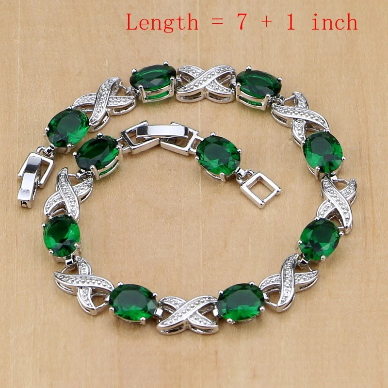 Special Offer Zilver 925 Sieraden Groen Gemaakt Emerald Wit CZ Sieraden Sets Vrouwen Oorbellen Hanger Ketting Ringen Armband Discount 50% Today!