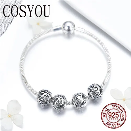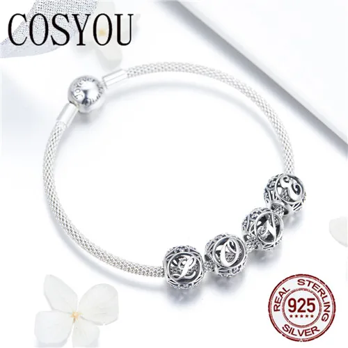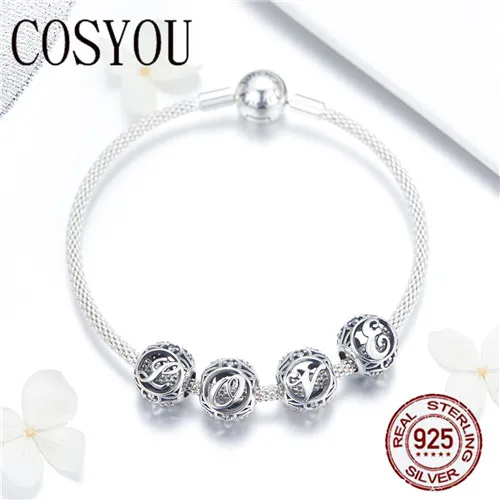 Special Offer COSYOU Trendy Nieuwe 925 Sterling Zilver Letter Alfabet Bedels Forever Love Sluiting Snake Armbanden voor Vrouwen Zilveren Sieraden SCB815 Discount 0% Today!